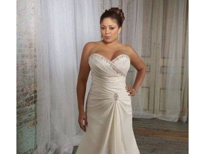 Elegant Trumpet/Mermaid Sweetheart Sweep Train Satin Plus Size Wedding DressSilhouette: Trumpet/MermaidNeckline: Sweetheart, Strapless Sleeve Length: SleevelessHemline/Train: Sweep TrainWaistline: NaturalFabric: SatinFully Lined: YesBuilt-in Bra: YesEmbellishment: BeadingTechnics: RuffledStyle: Classic & Timeless, ElegantWedding Venues: Church, Garden/Outdoor, HallSeason: Spring, Summer, Fall, WinterNet Weight: 2.5KG Shipping Weight: 3.6KG